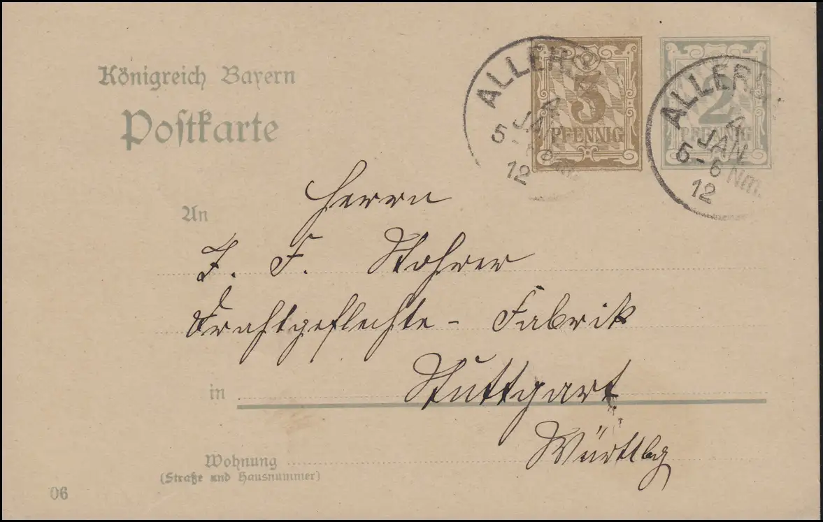 Carte postale P 74/04 Édition de consommation DV 06, ALLERSBERG 4.1.1912 vers Stuttgart