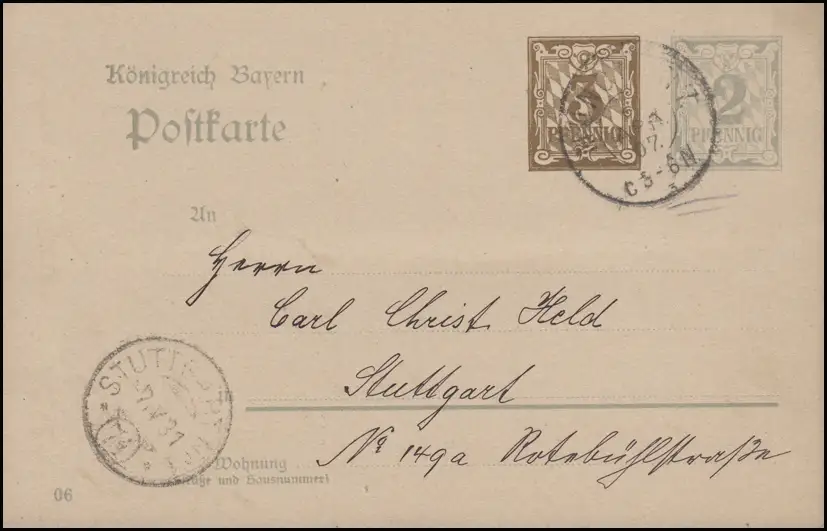Carte postale P 74/04, paragraphe 3+2 pf. DV 06, MUNICH 7. - 6.4.07 selon STUTTGART 7.4.