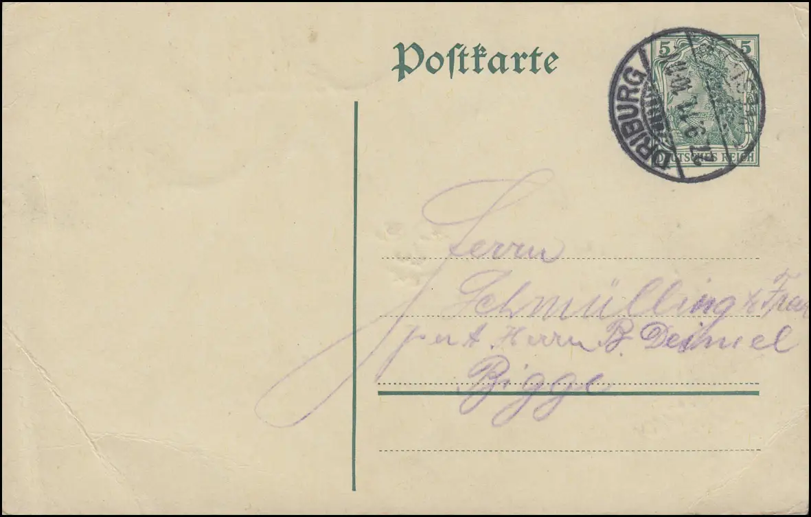 Carte postale P 90I Germania 5 Pf. de DRIBURG (WESTF.) 27.9.11 vers Bigge