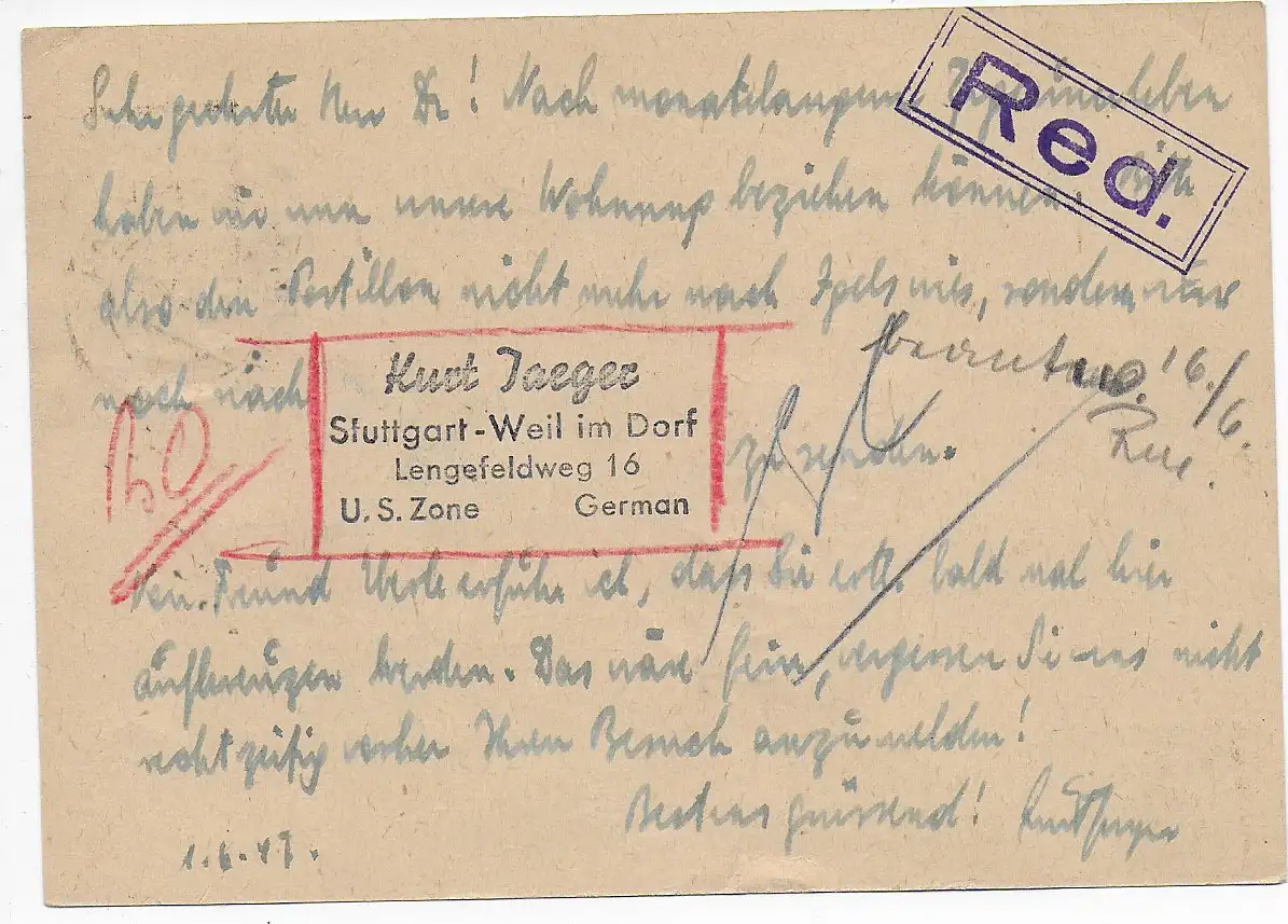 Carte postale Stuttgart Weil-im-Vorf vers Berlin, 1947