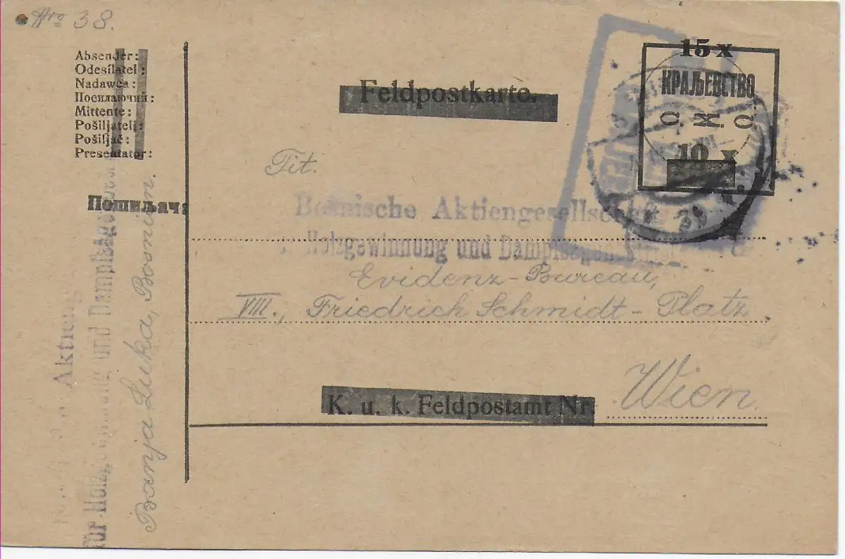 Carte postale Carte de champ de Banja Luka à Vienne,1920