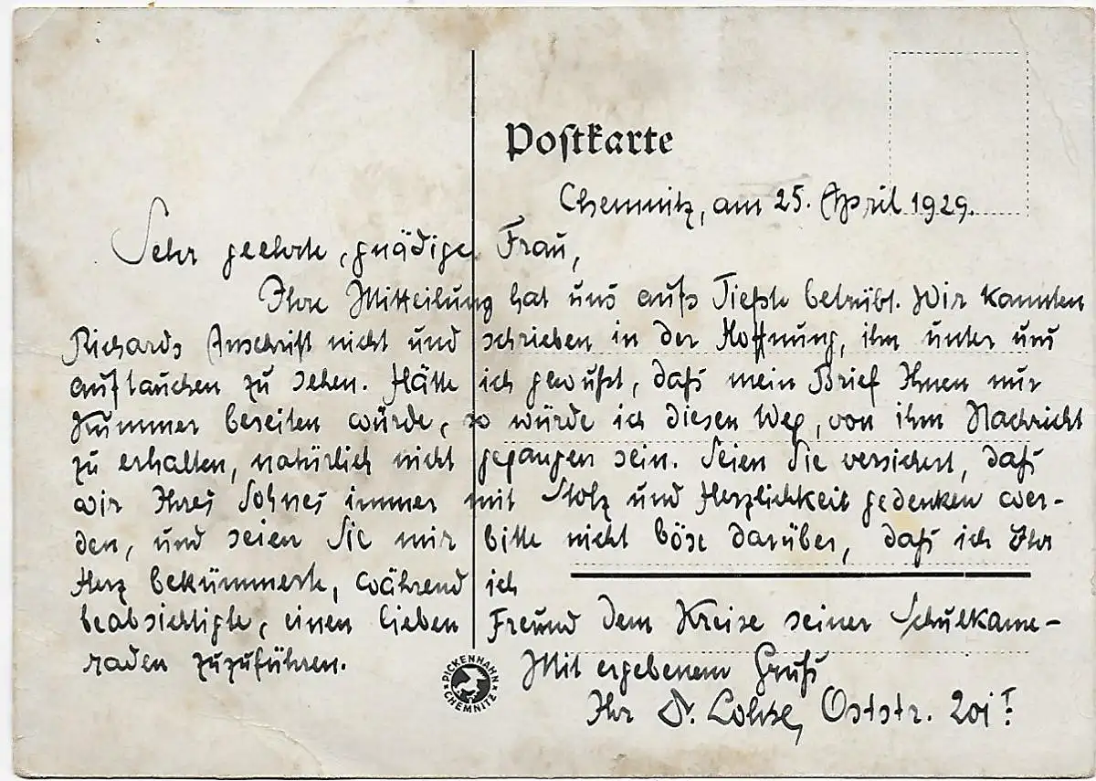 Carte postale: consécration du nouveau lycée de Chemnitz 1929