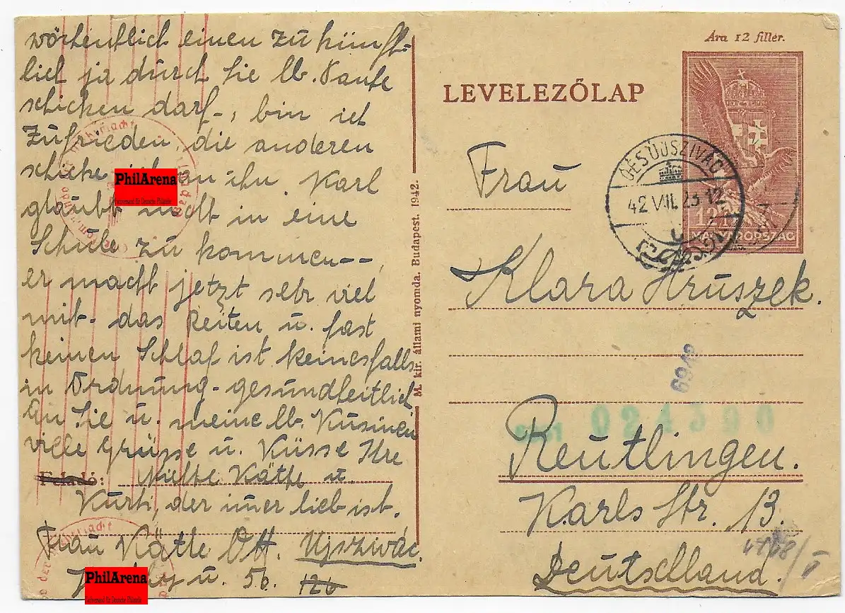 Carte postale à Reutlingen avec censure OKW
