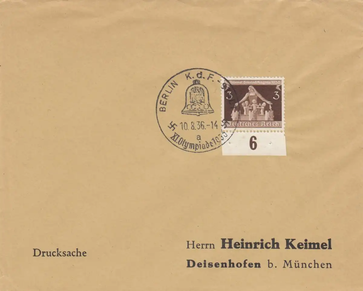 Affaire postale Kuvert 1936: Berlin KdF, XI Olympiade