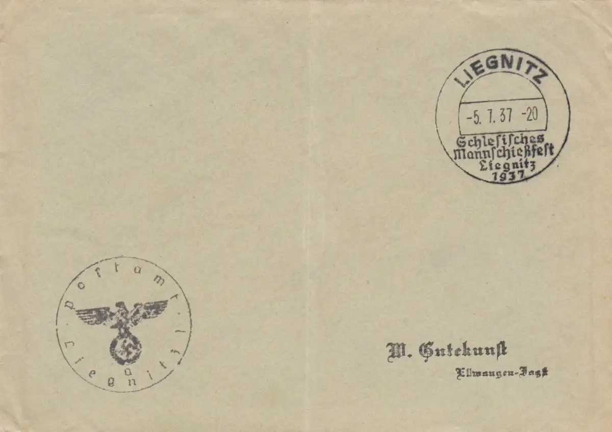 Affaire postale Kuvert 1937: Liegnitz Schlesisches Mannspiegelfest