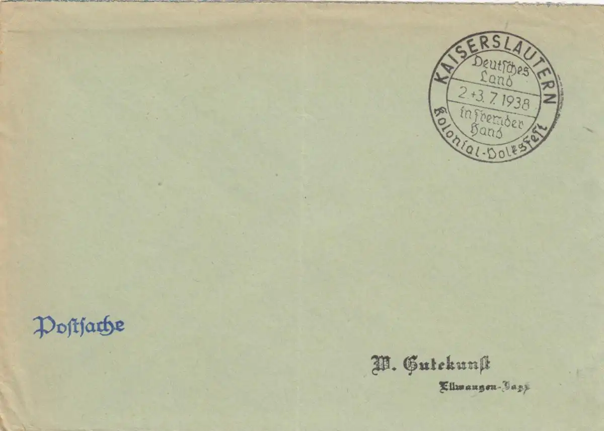 Affaire postale Kuvert 1938: Kaiserslautern Colonial Volksfest: Allemagne