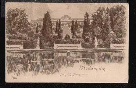 Potsdamm. Schloss Sanssouci - Nicht gelaufen. Kl. Eckknick. (NPLZ 14400)