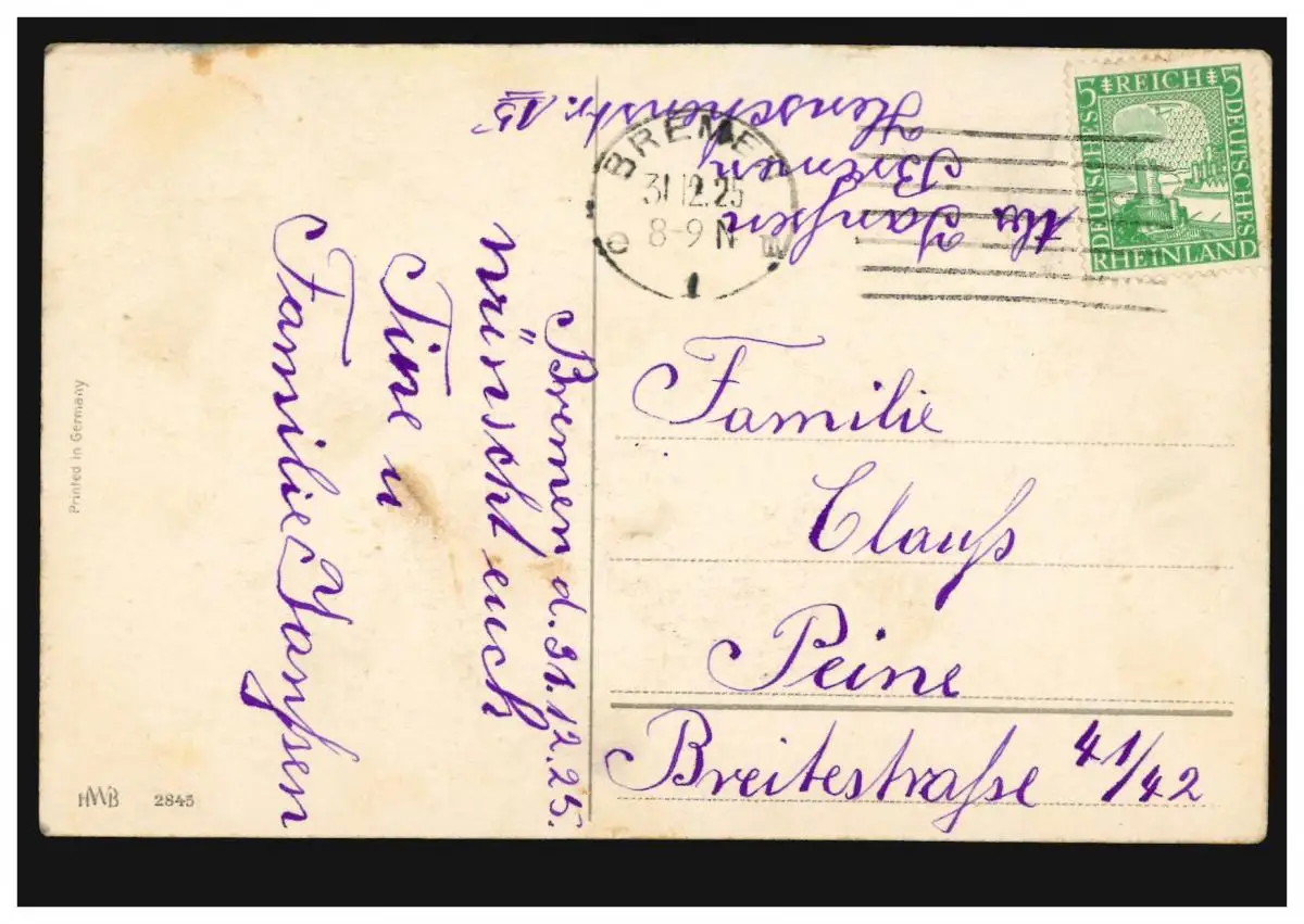 Carte du Nouvel An: Un cheval horrible plonge dans l'eau ! - BREMEN 31.12.1925 Vérification: original Référence produit: 00000000037478