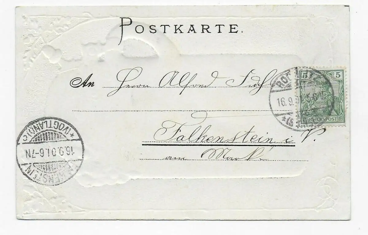 Carte de la cruche de bière, griffe de gymnastique, Rochlitz à Falkenstein, 1901