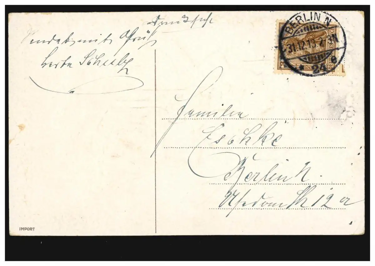 Carte de l'année Nouvel An Les enfants jouent sur la glace, BERLIN N 24 e 31.12.1913
