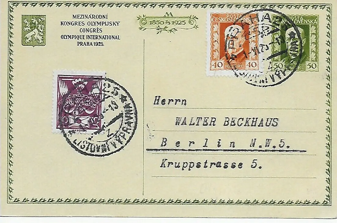 Prague 1925: Congrès olympique sur la carte de Berlin