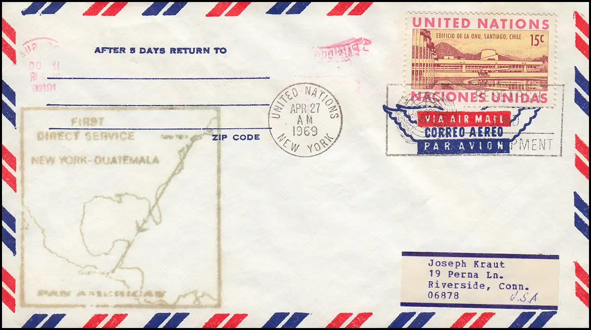 Premier vol FIRST DIRECT SERVICE New York 27.4.1969 vers Guatemala 28.4.
