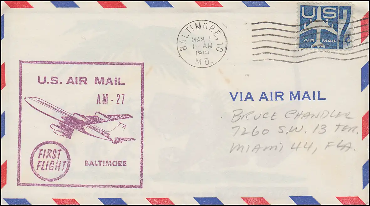 Premier vol FIRST FLIGHT AM-27 de Baltimore MD. 1.3.1961 à Miami / Floride 1.3.