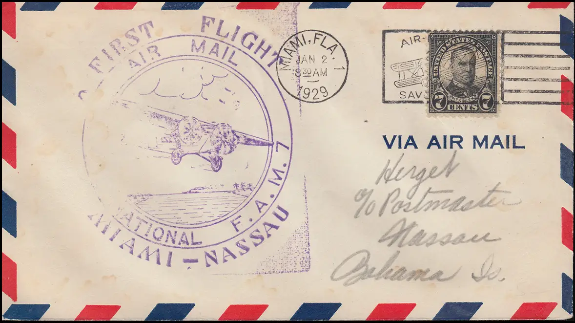 Premier vol FIST FLIGHT F.A.M 7 de MIAMI / FLA. 2.1.29 vers NASSAU / BAHAMAS 2.2.