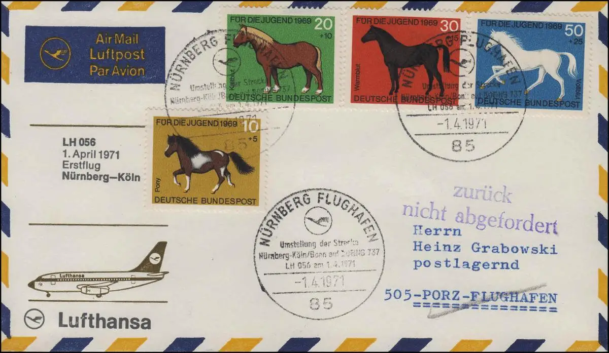 Premier vol Lufthansa LH 056 Passage Boeing 737 Nuremberg/ Cologne (Bonn) 1.4.1971