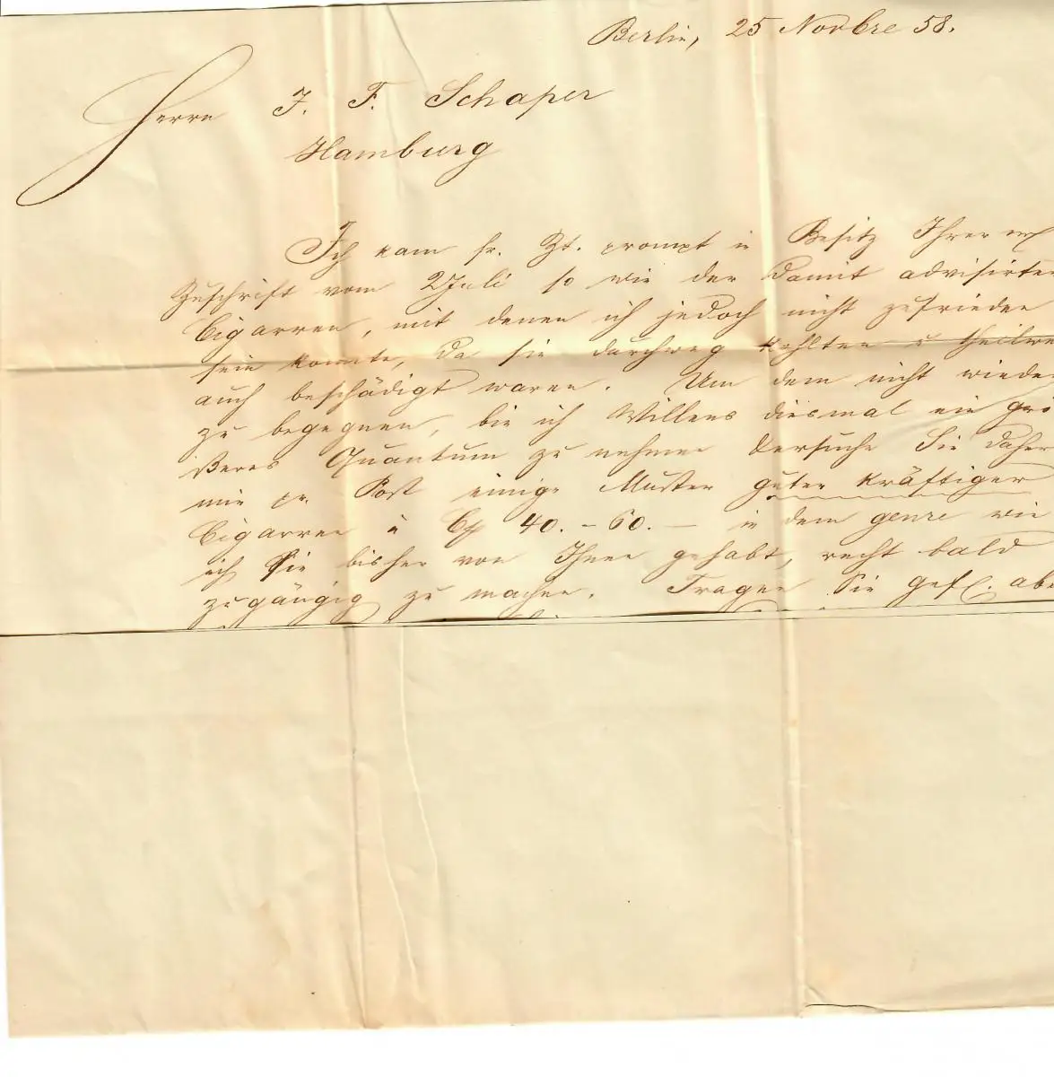 Preussen/Berlin, recommandé 1858 Stadtpost a Hambourg