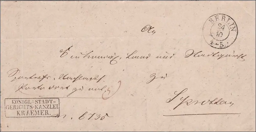 Prusse: Lettre de Berlin 1849 avec texte à l'intérieur