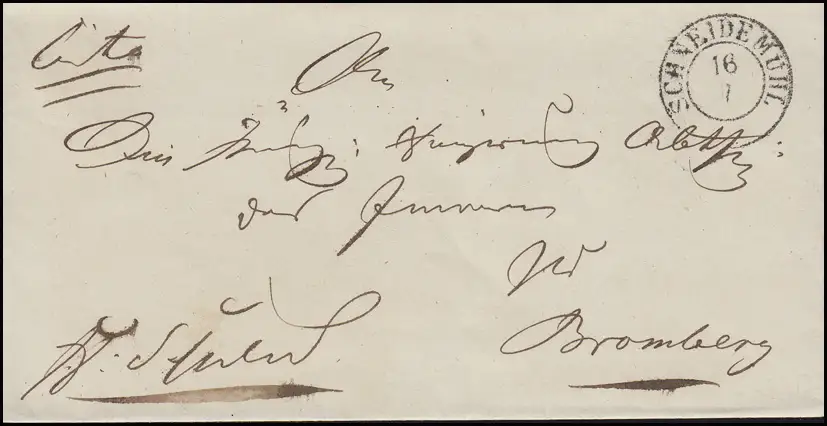Prusse Coque à lettres Tampon à deux circuits SCHNEIDEMÜHL 16.7. après Bromberg