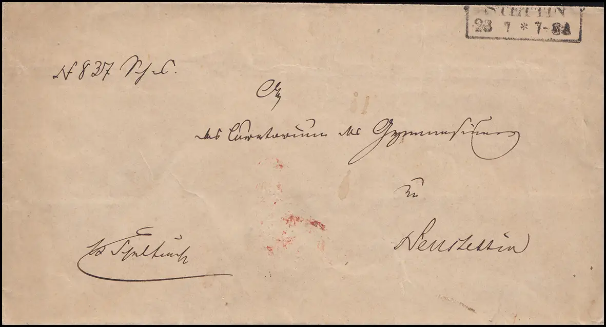 Lettre de service de Prusse Stemplaire cadre STELTIN 23.7. (vers 1850) selon Neustettin 25.7.