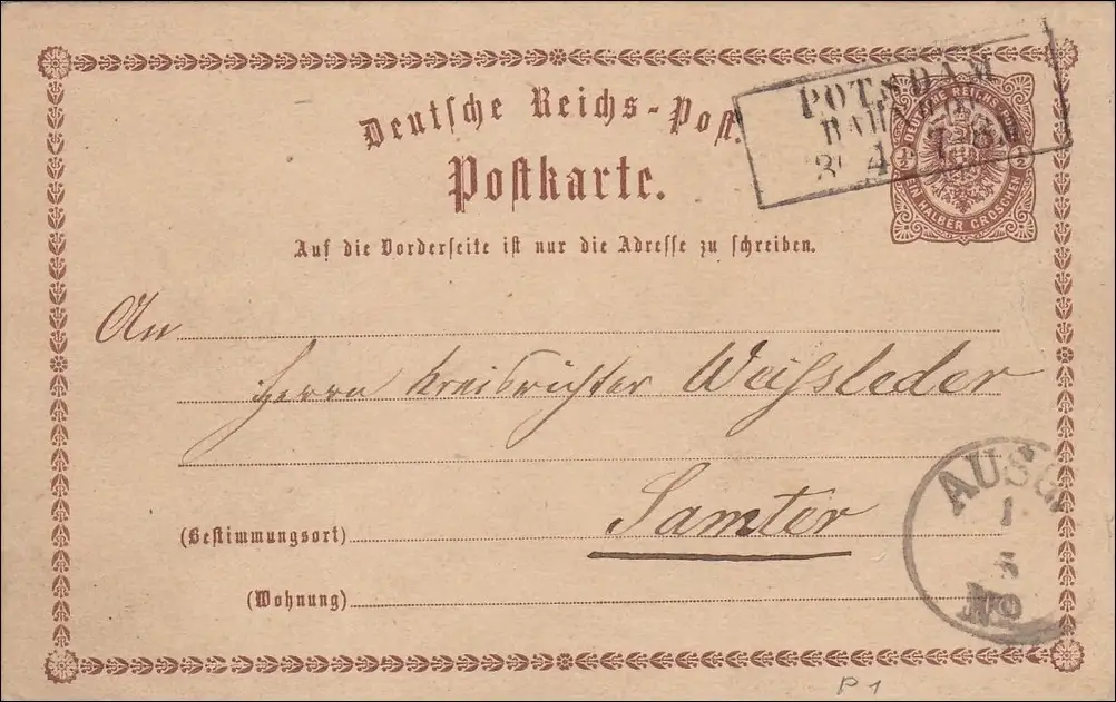 Prusse: Enveloppe complète de Potsdam à Samter, 1875