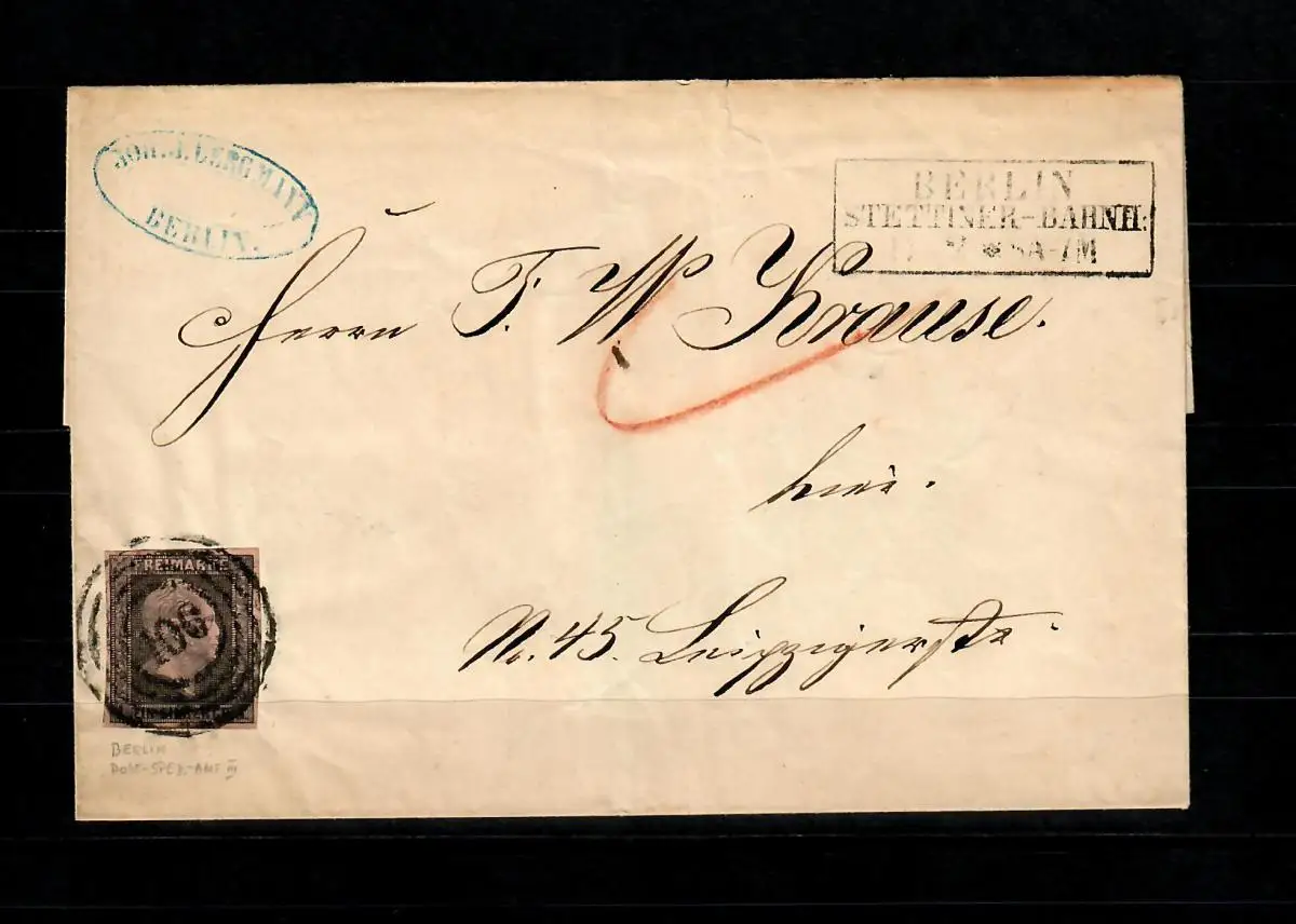 Prusse: gare de Szczecin Min. 2 sur lettre, Berlin