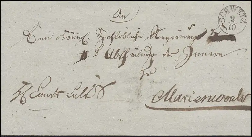 Prusse Vorcphilatelie Coque en cercle Tampon en encastré SCHEUZ 2.10. après Mariewerder