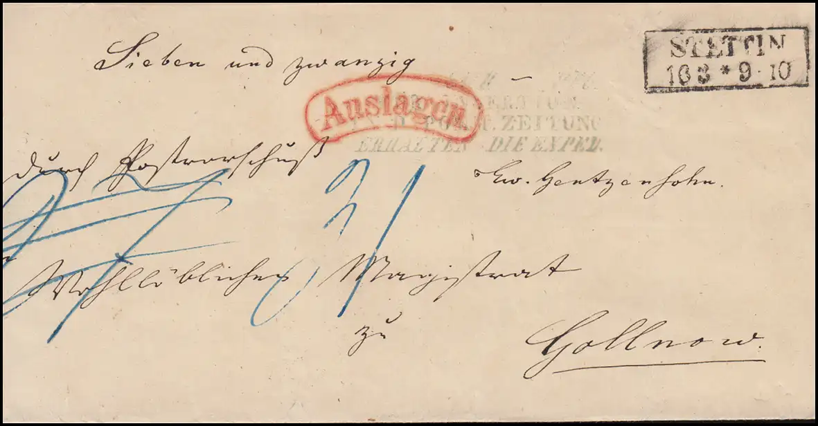 Prusse Préphilatelie enveloppe de lettre STETTIN 16.3. après le temple de la sortie de Gollnov