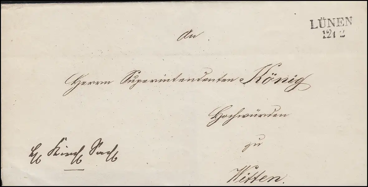 Prusse Préphilatelie Coque de lettre bi-bi-zeiler LÜNEN 12.1. selon Witten