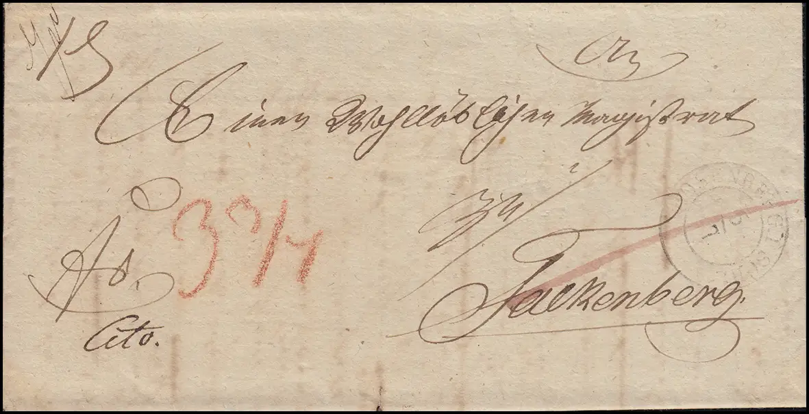 Prusse Vorphilatelie Lettre de pli de deux cercles ROSENBERG 5.7.1843 à Falkenberg