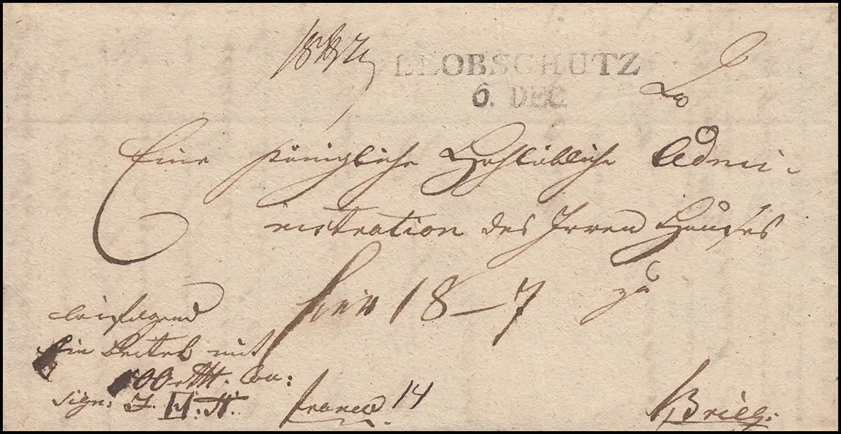Prusse Vorphilatelie Lettre de dépliage Leo Brieg 6.12.1821 à Briesg