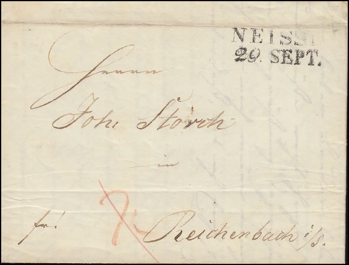 Prussen Vorphilatelie Blückschlifter NAISE 29.9.1841 vers Reichenbach/S.