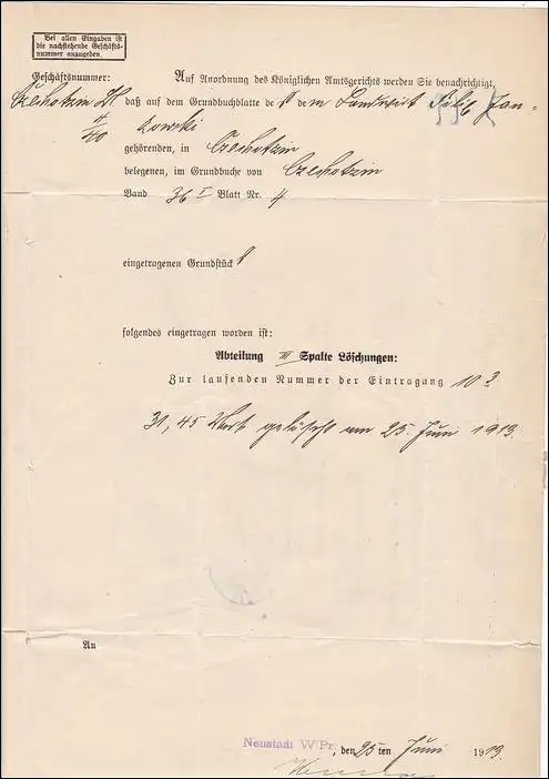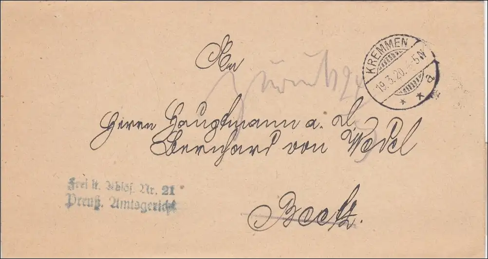 Cour fédérale de Prusse Kremmen - inconnu de retour 1920
