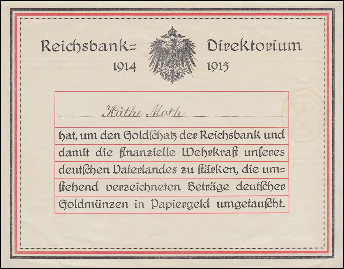 Formulaire "Directive Reichsbank 1914/1915" avec texte et noms, timbre "L'école de commerce municipale de Riemerschmid" sur 20 marks du 9.3.1916 Vérification: original Référence de l'article: 00000000012064>Note: Cet article n'est disponible qu'une seule fois. Vous recevrez exactement l ' article représenté.