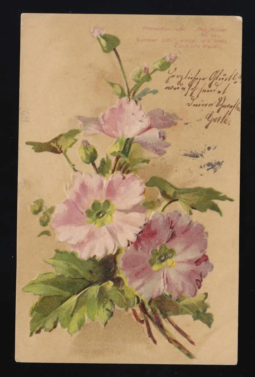 Primelchen crie: L'hiver est éteint, Fleur Oldenburg /Bremen Bahnpost 3.7.1906