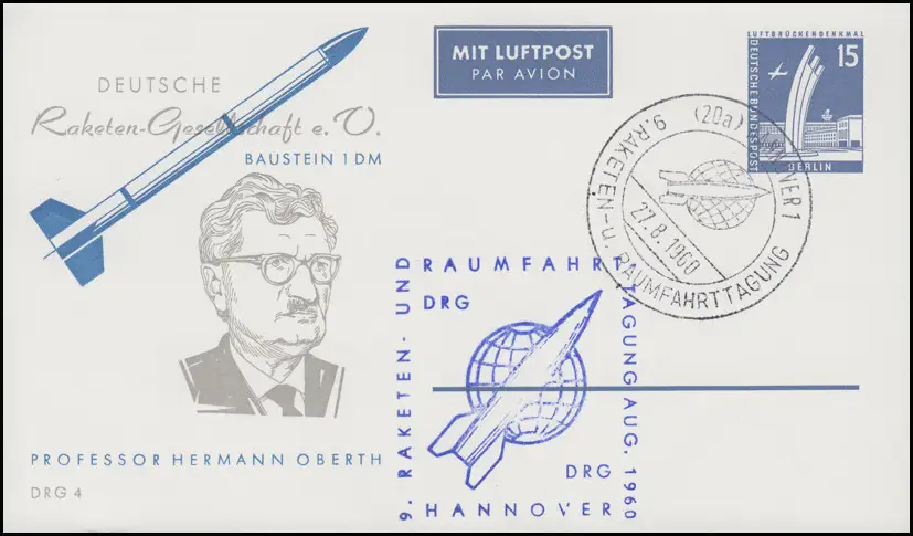 Carte postale privée PP 19/12 DRG H. Oberth SSt HANNOVER Réunion des missiles 27.8.60