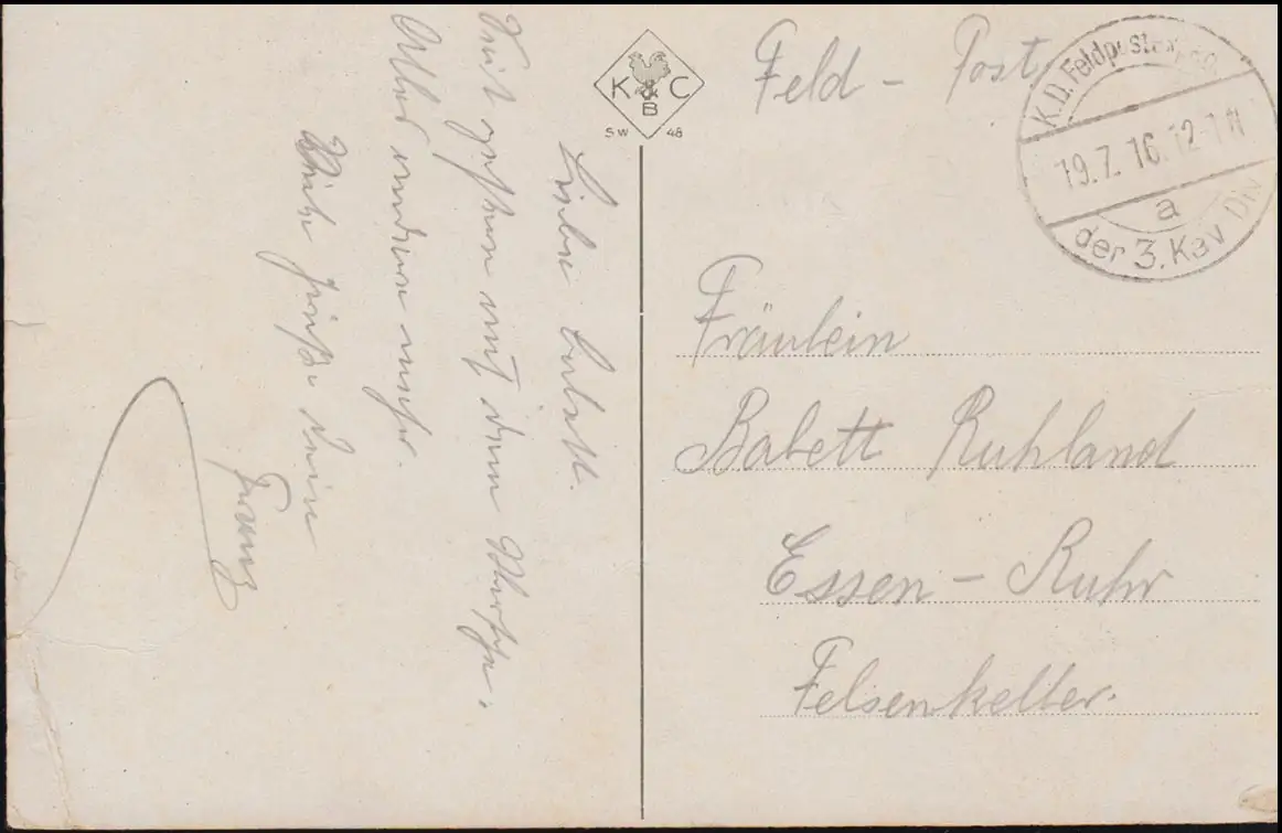 Les AK de propagande de Pologne russe, courrier de champ 3e div de cavalerie. 19.7.1916