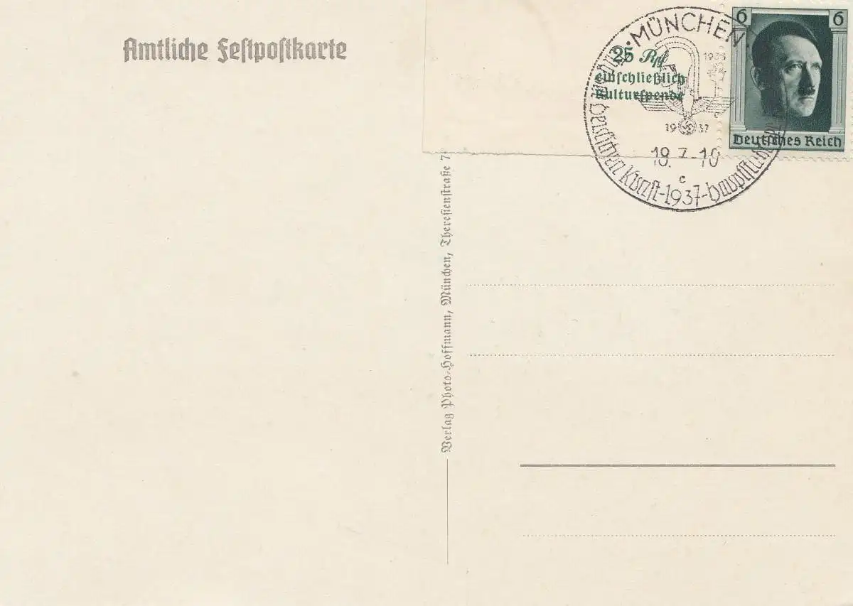 Propagande: Journée de l'art allemand 1937 - Tampon spécial Munich