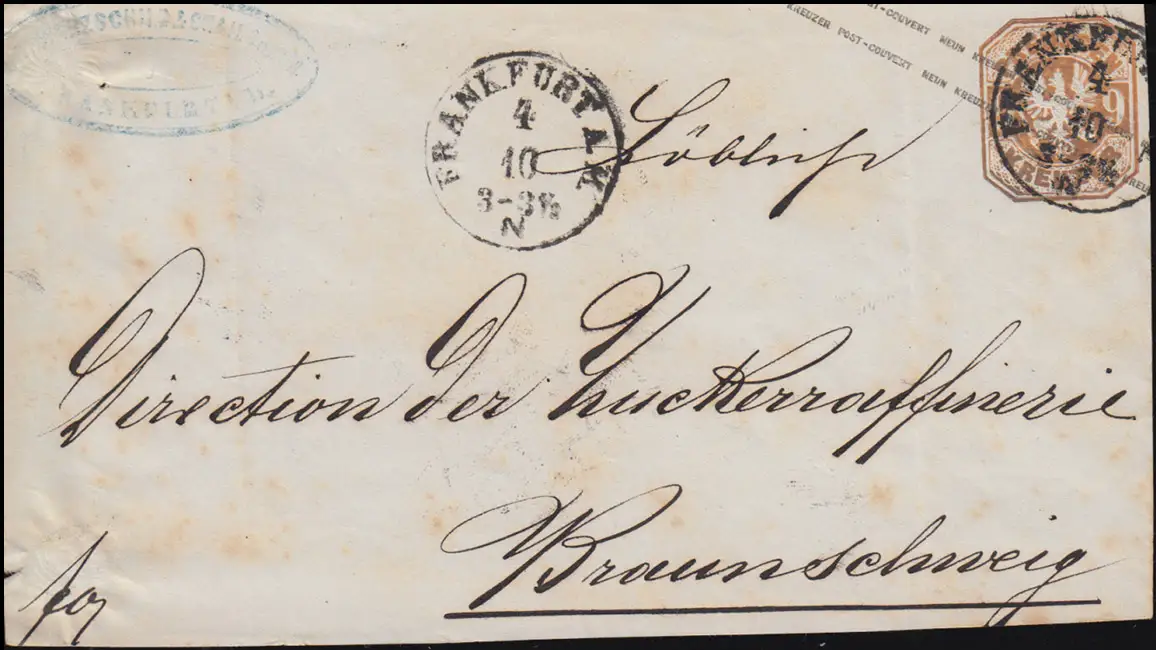 Prusse Couverture U 38 en avant-poste FRANKFURT/MAIN 4.10. n. Braunschweig