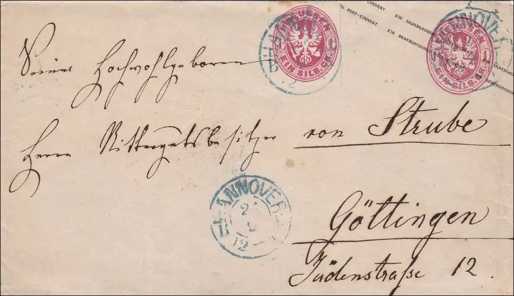 Prusse: Enveloppe complète de Hanovre à Göttingen