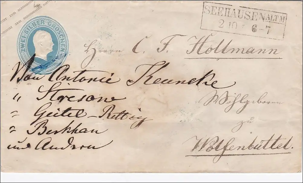 Prusse: Envoi de faits de gencives de Seehausen à Wolfenbüttel