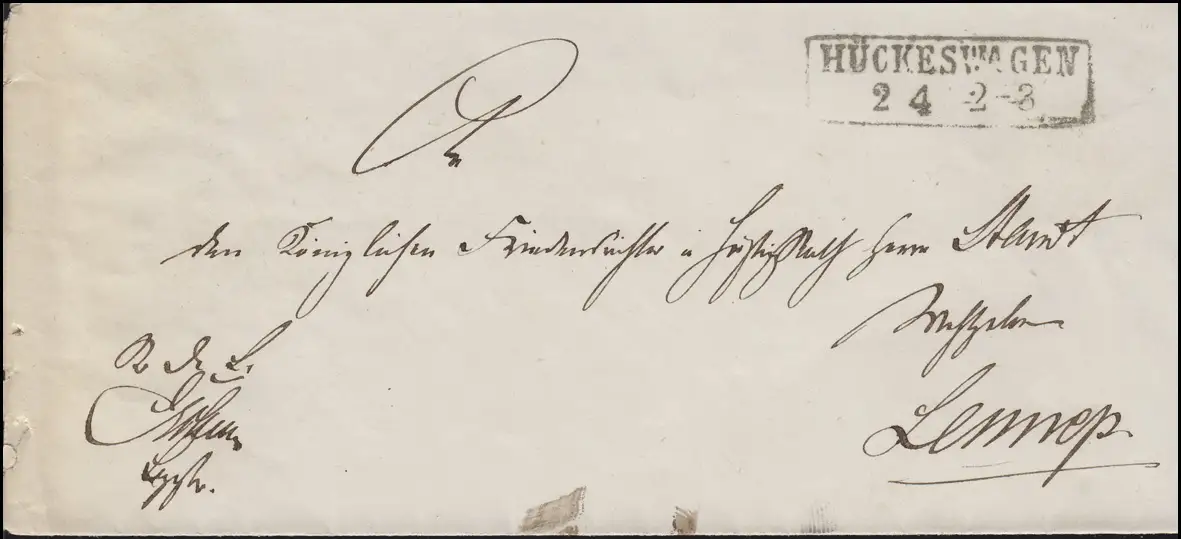 Prusse Préphilatelie Enveloppe de la boîte Tampon de HÜCKESWAGEN 2.4. selon Lennep 2.4.