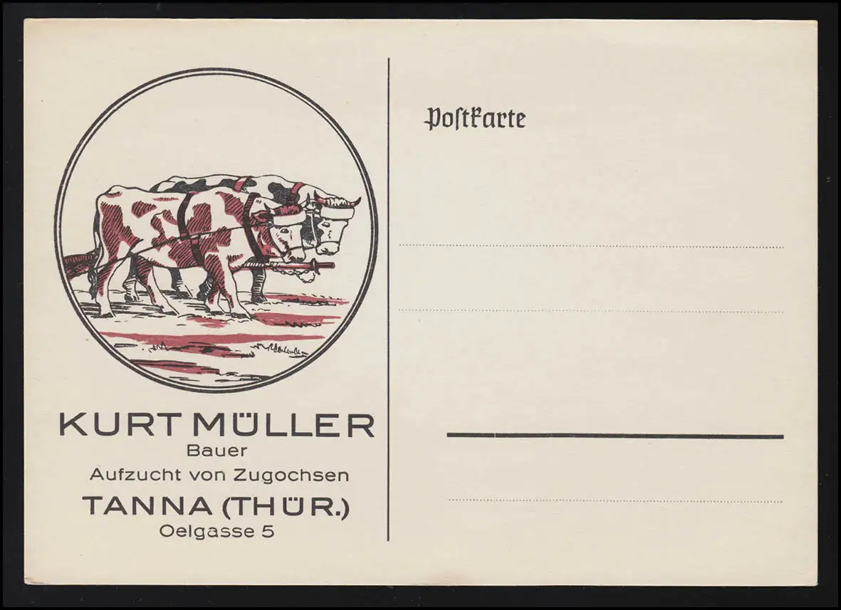 Publicité AK Bauer Zugochsen élevage, Kurt Müller TANNA (Thüringen), non utilisé
