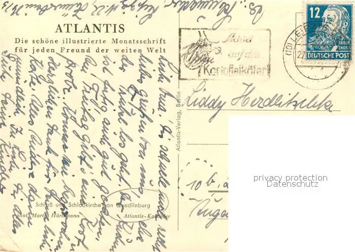 Quedlinburg Schloss und Schlosskirche Quedlinburg postalisch gelaufen 1950 Erhaltung siehe scans [FriedD77] Frierer
