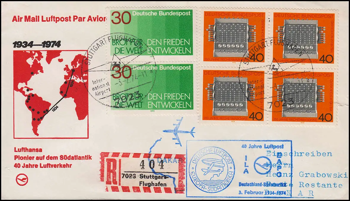R-Lettre Lufthansa 40 ans Aéroport Ila EAPO STUTTGART /DAKAR 3/ 6.2.1974
