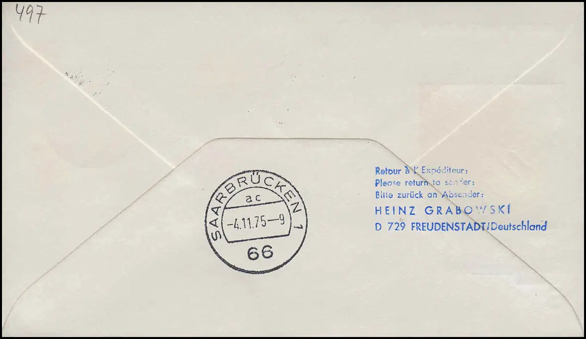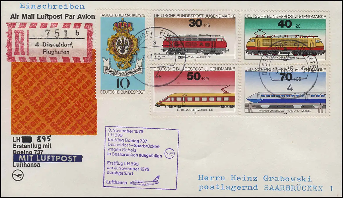 R-Lettre Lufthansa Premier vol Boeing 737 LH 895 Düsseldorf/ Sarrebruck 3/4.11.75