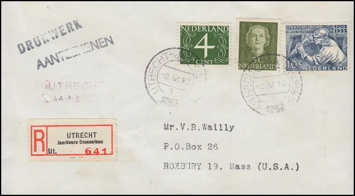 R-Imprimerie de la bourse des timbres UTrecht-JAARBEURS 8.5.1952 aux États-Unis