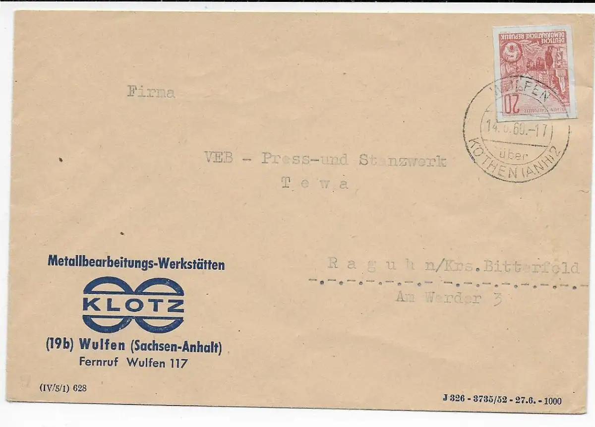 RDA: Wulfen d'après Raguhn, 1960 avec une découpe complète