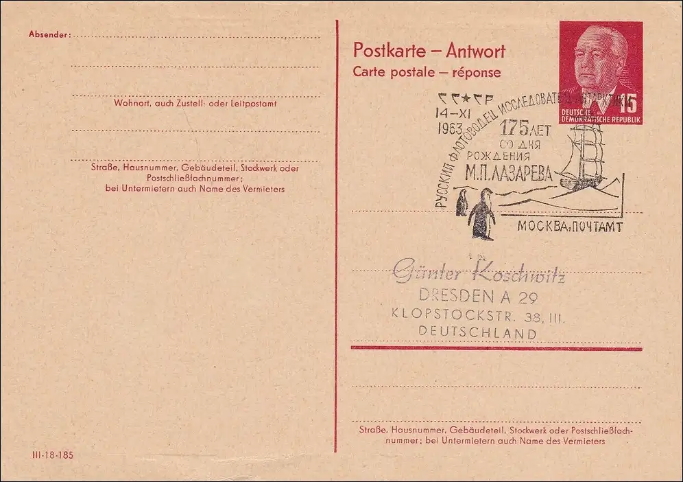 RDA: entier avec cachet spécial 1973 - Pingouins-Nacht Dresde
