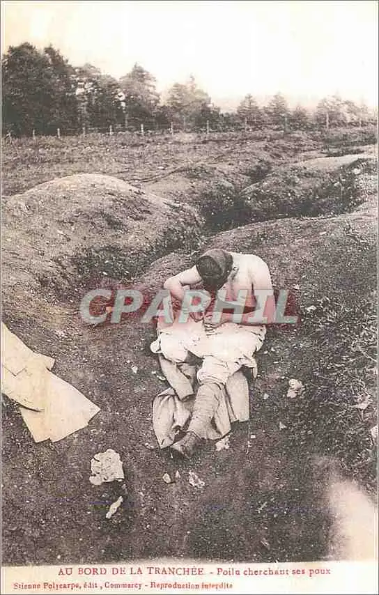 REPRO Au Bord de la Tranchee Poilu Cherchant ses poux Militaria