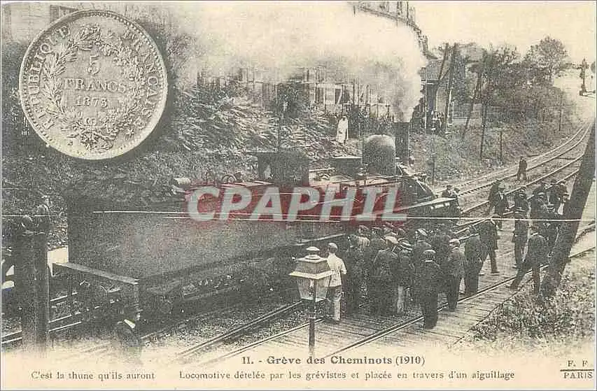 REPRO Greve des Cheminots (1910) Locomotive detelee par les Grevistes Train
